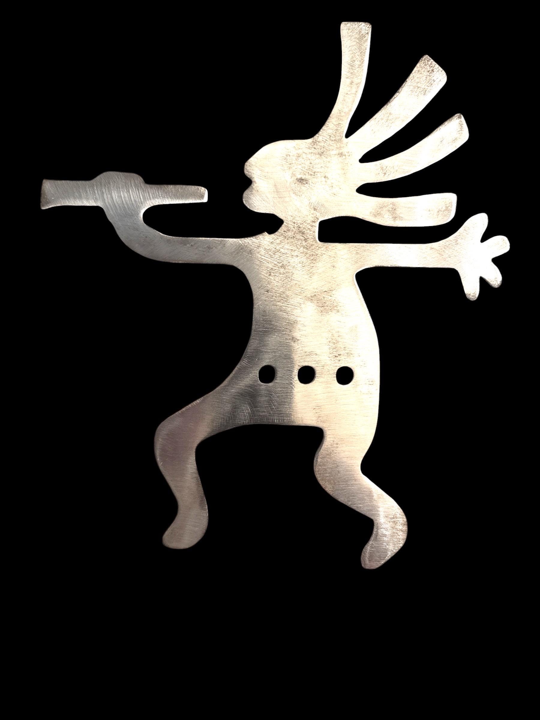 KOKOPELLI TRUMPET made of steel. Unfinished raw steelGreat for your projects and DIY projects.Measures 8 1/2" wide x 10 inches tall (measurements are approximate)