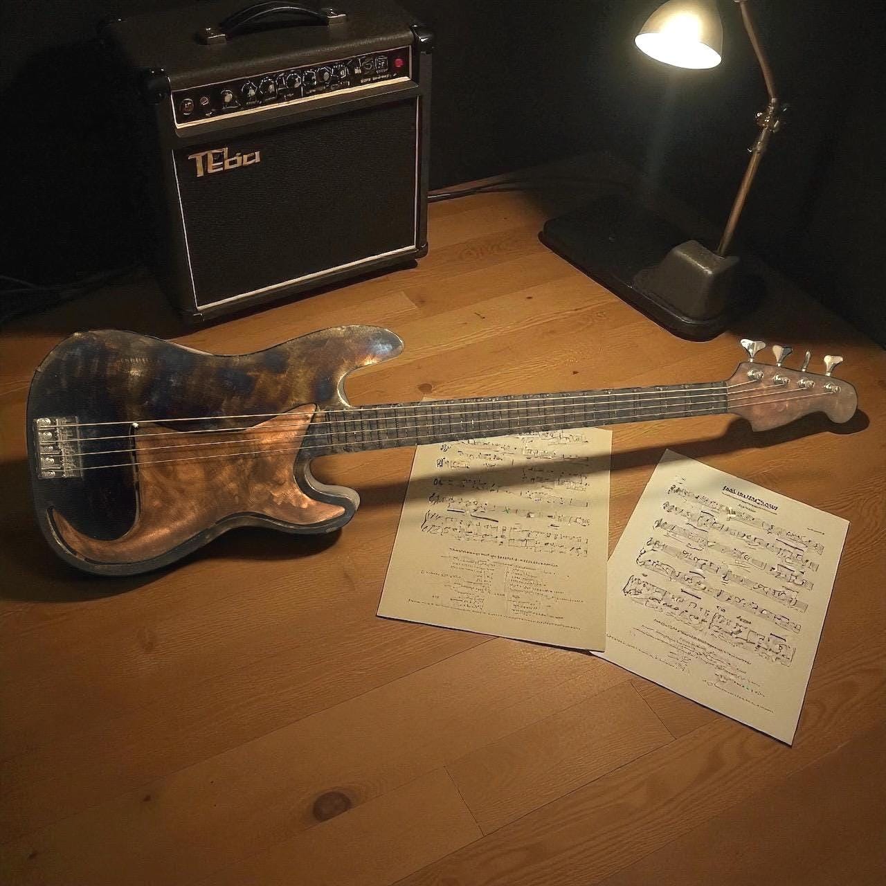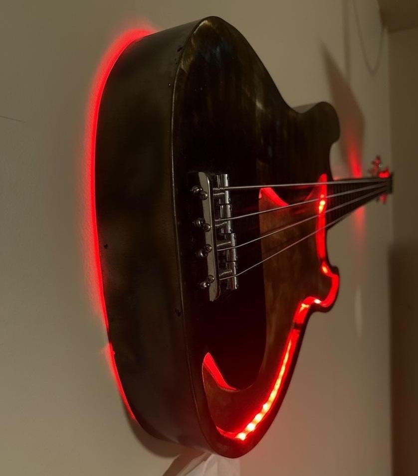 This custom guitar wall art is made out steel,pipe,rebar and screws for the frets